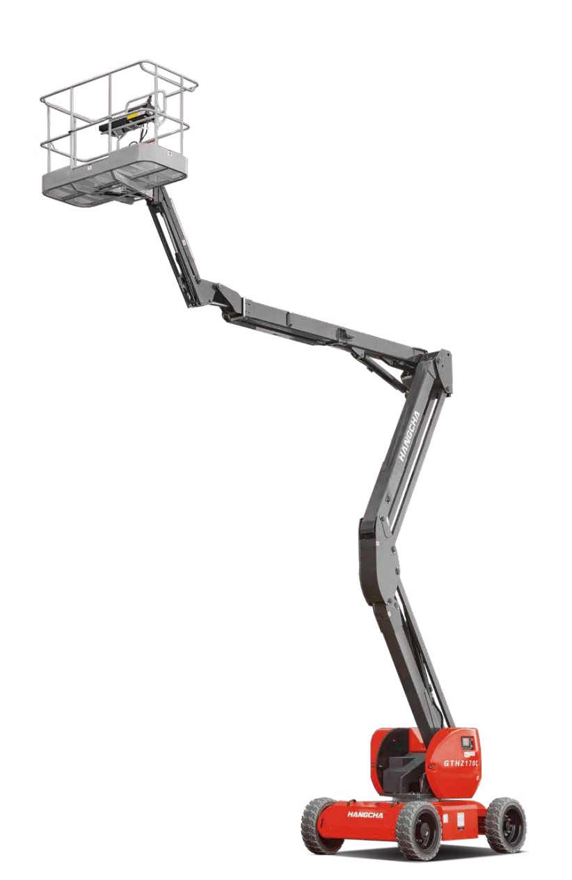 Hangcha GTHZ170C 是一款全電動鉸接式高空作業平台(Articulated Boom Lift),由杭叉集團(Hangcha Group)設計,屬於其高空作業設備系列,專為室內外高空作業提供高效、安全和靈活的解決方案。該設備以其高達 17 米的工作高度、優異的全地形能力和零排放特性,廣泛應用於建築、維護和園林等場景。
